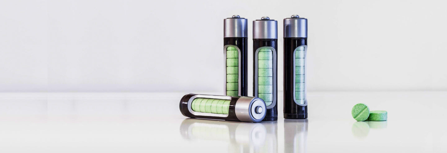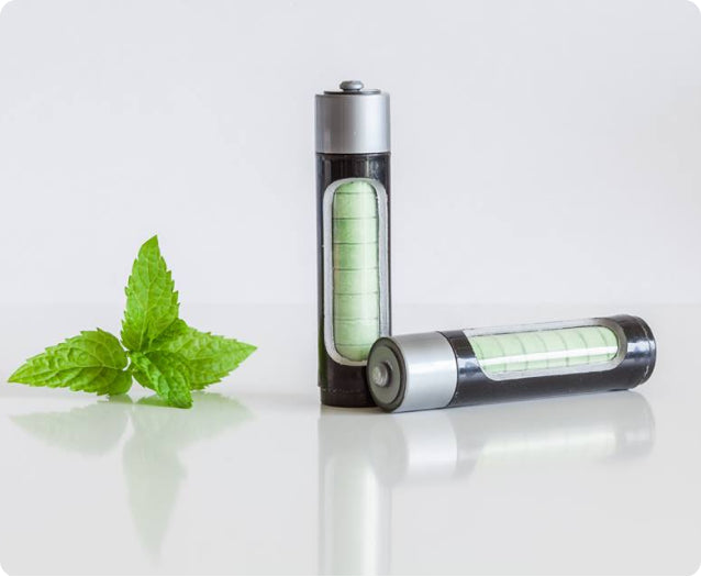 Each 'Battery' contains 10 caffeinated mints in your pocket or purse for instant energy and fresh breath, on-demand.